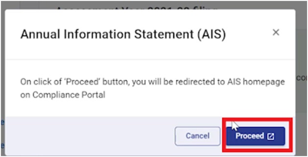 A pop up massage will be displayed. It says ‘On click on proceed button you will be redirected to AIS home page’. Click on the ‘proceed’ button under this massage.